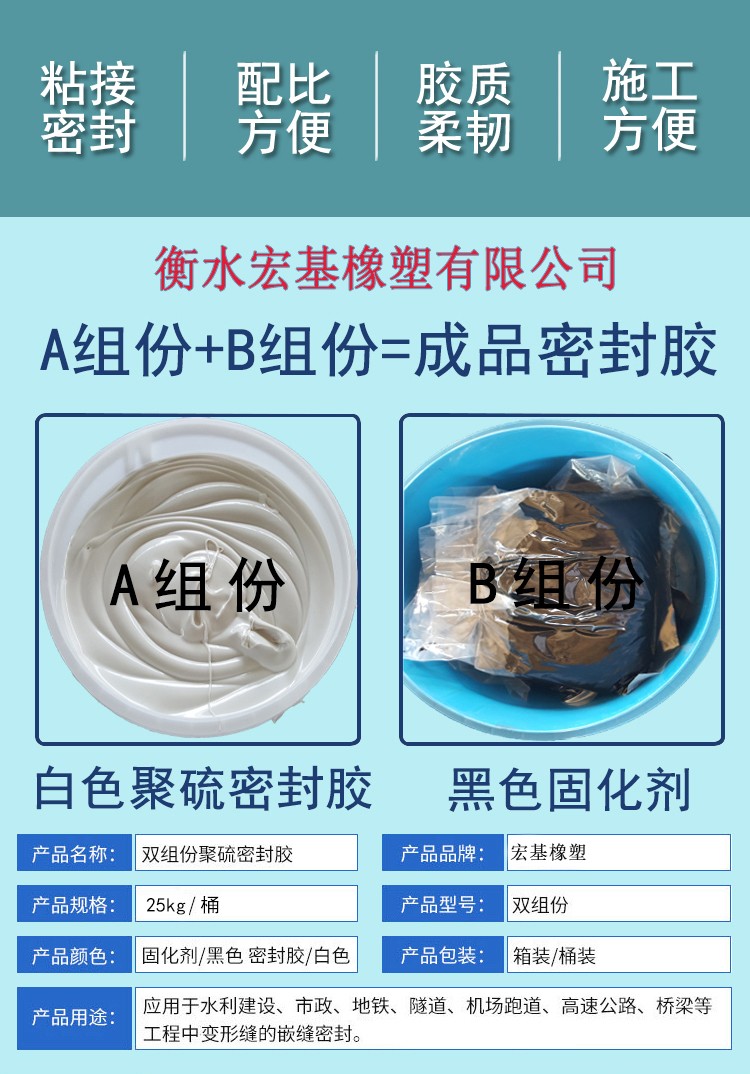雙組份聚硫密封膠是一液態橡膠為主要基料,雙組份聚硫密封膠具有優良的耐水、耐油、耐老化、耐腐蝕的特性雙組份聚硫密封膠并以密封性好、粘結力強、彈性好